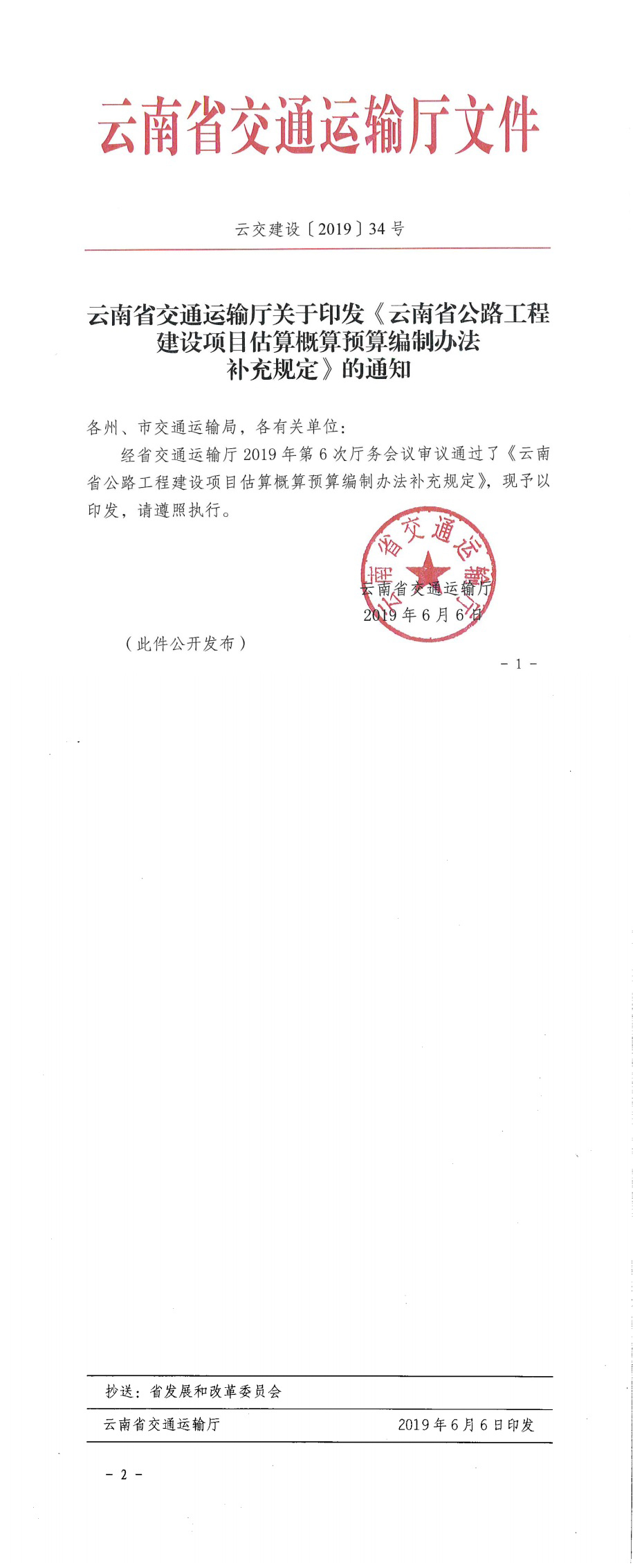 雲南(nán)交通(tōng)運輸廳關于印發《雲南(nán)省公路(lù)工(gō♠♣©®ng)程建設項目估算(suàn)概算(suàn)預算(suàn)編制(zhì)辦φ♣♦法補充規定》的(de)通(tōng)知(zhī)-雲交建設™€₹☆[2019]34号